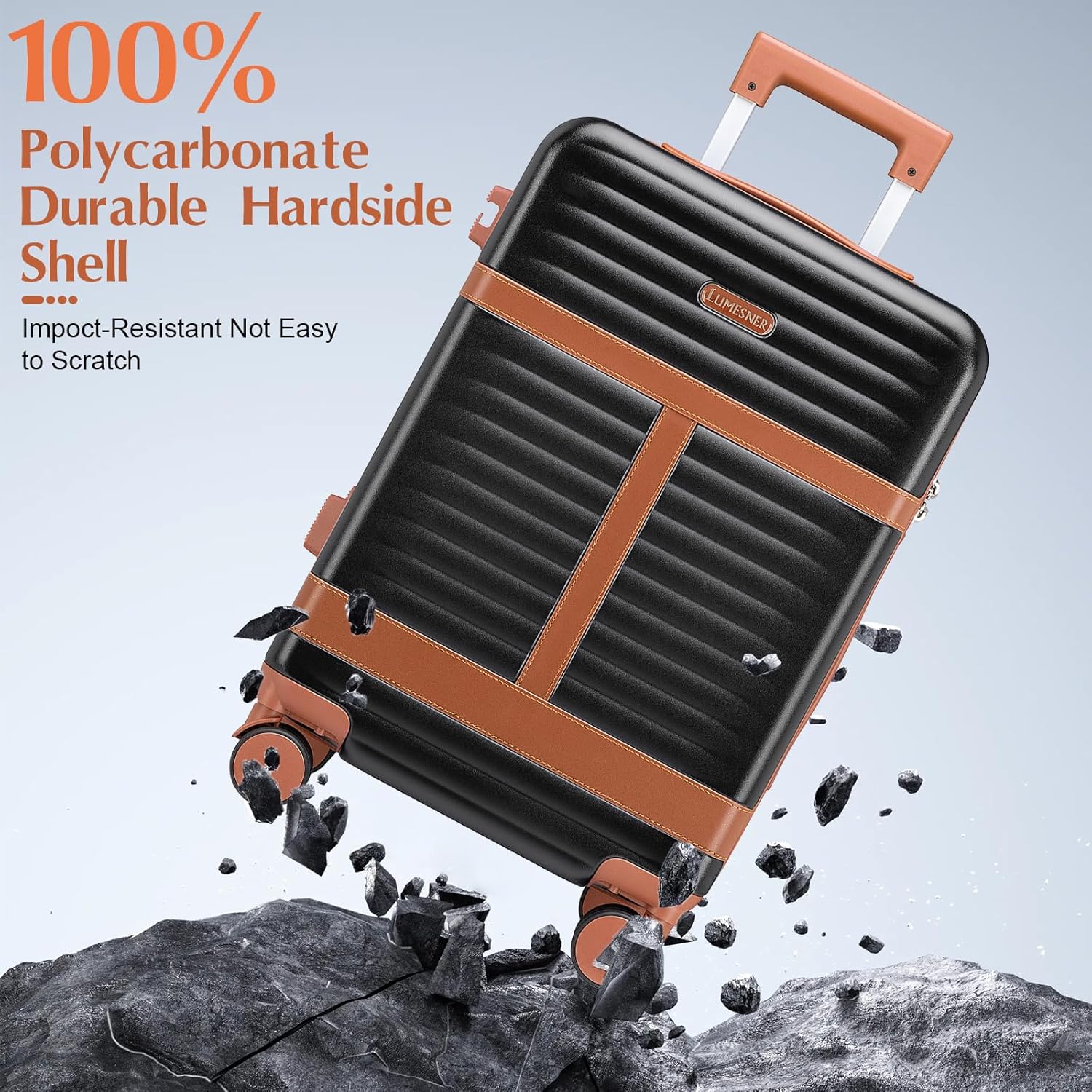 Lumesner 5 Piece Luggage Sets with Travel Backpack, 20" Carry On Hardside Spinner Suitcases, TSA Lock, Durable PC (Black, 5 piece set (20inch))