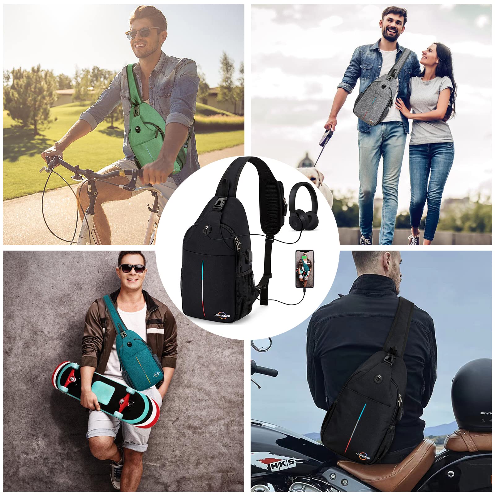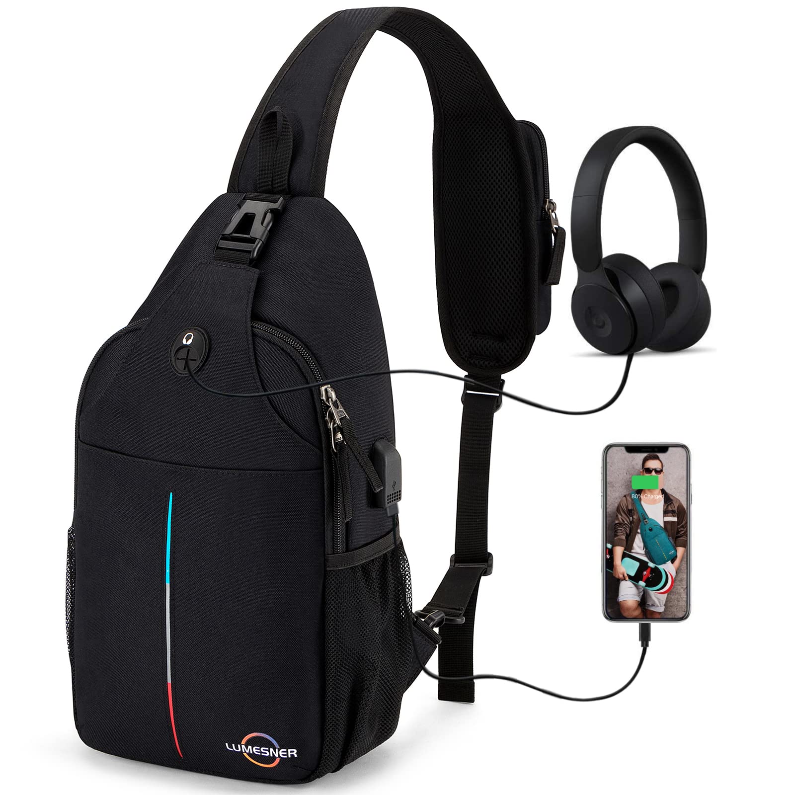 Lumesner Sling Bag Crossbody Sling Backpack with USB Charging Port,Water Resistant Shoulder Bag for Men Women,Lightweight One Strap Backpack Chest bag for Hiking,Cycling,Biking